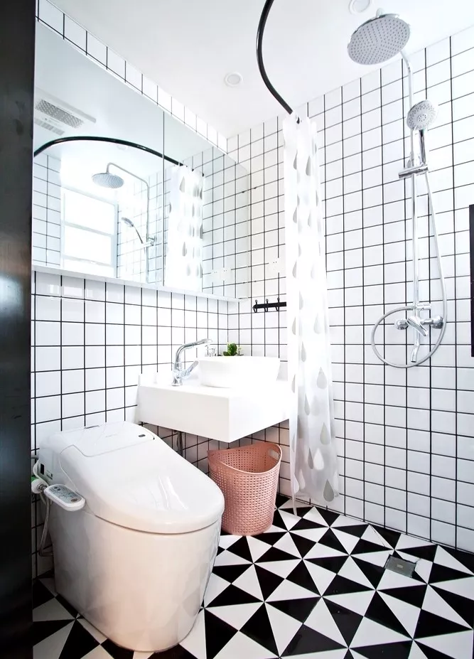 另外,浴帘也是小卫生间的好搭档,比玻璃隔断要更加灵活,节省空间。有时候面积小的情况下,各个功能区难免需要重叠,相互借用空间。