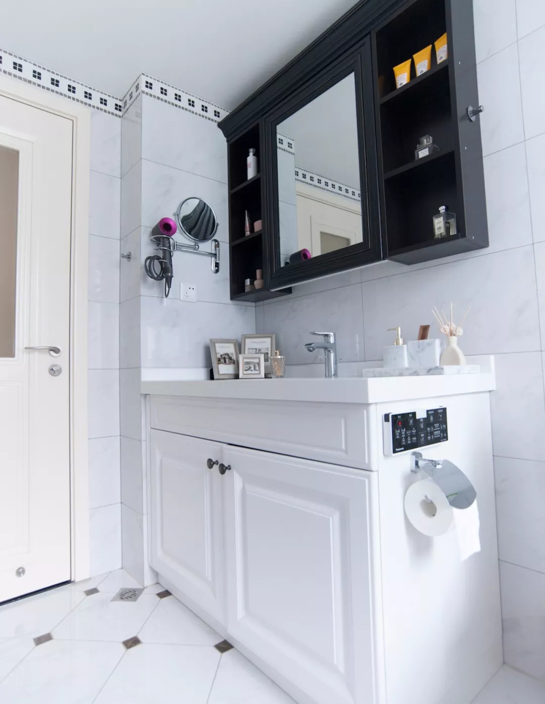 卫生间需要很多收纳空间吗?那取决于居住人口的生活习惯。很多女生的瓶瓶罐罐之多超乎想象,洗手台附近必须有一个较大的收纳空间。