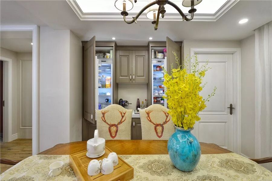 冰箱通常是设计放置在厨房最多,其次是餐厅,为什么?因为拿东西方便呗,专业点讲就是动线最优。但是遇到户型实在没办法的时候,要放客厅或者阳台也不是不可以,毕竟多数都是100来平的房子,也走不了多远。