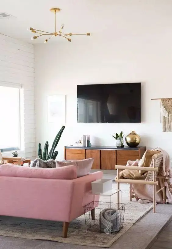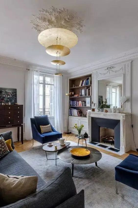 层次分明、立体感强。常与射灯、筒灯、灯带搭配使用,适合大空间的客厅。
